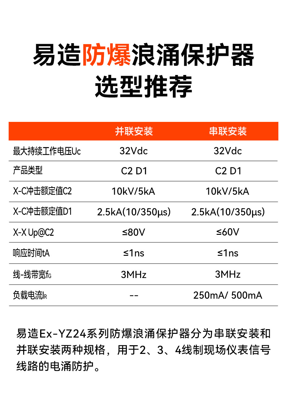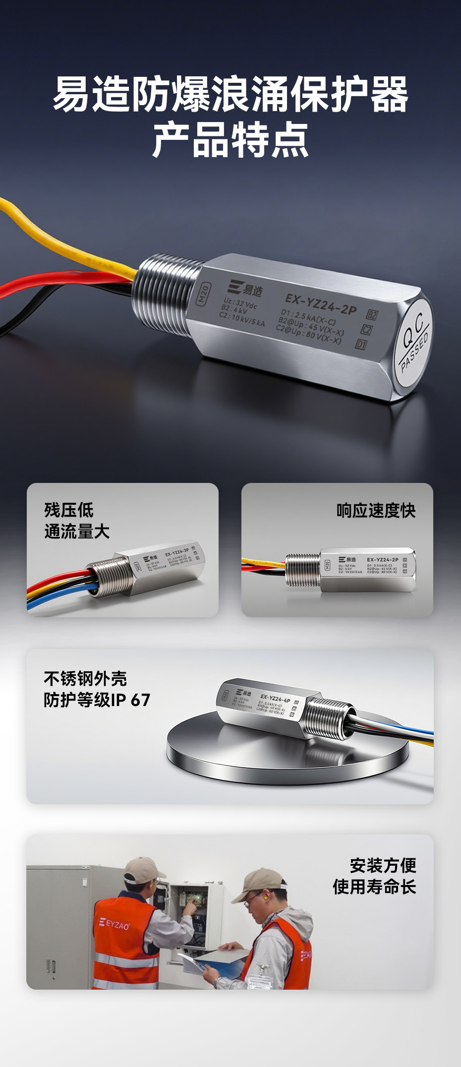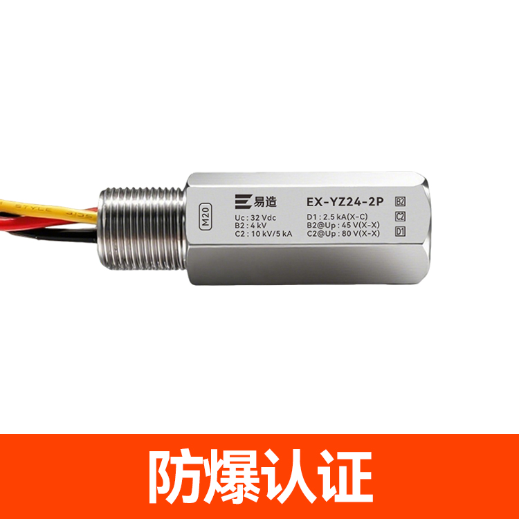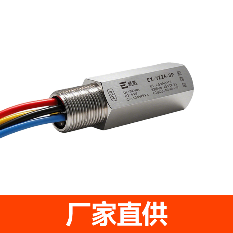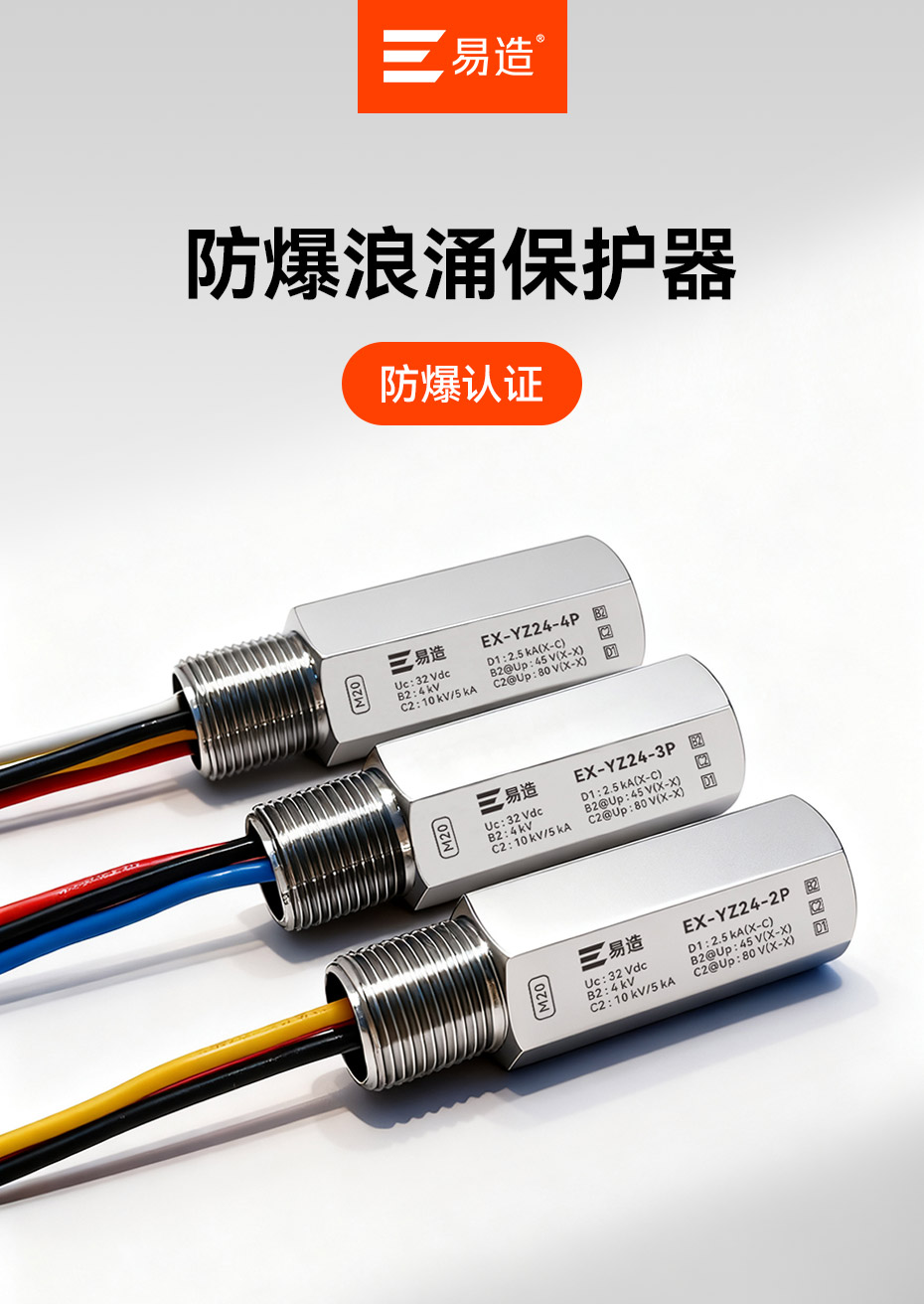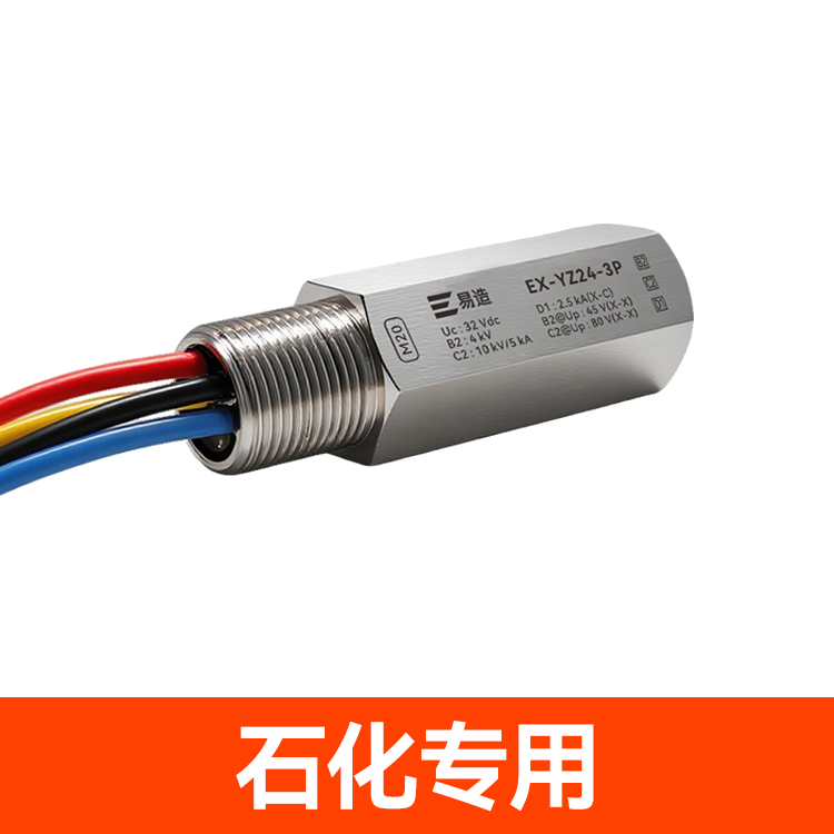 防爆浪涌保護器又名防爆信號防雷器、管式電涌保護器、現場儀表防雷器,易造Ex-YZ24系列防爆浪涌保護器依據GB/T18802.21設計,適用于石油化工、油庫、天然氣等易燃易爆區域及環保、新能源等行業現場儀表的電涌防護,安裝接口可以根據客戶的要求定制。