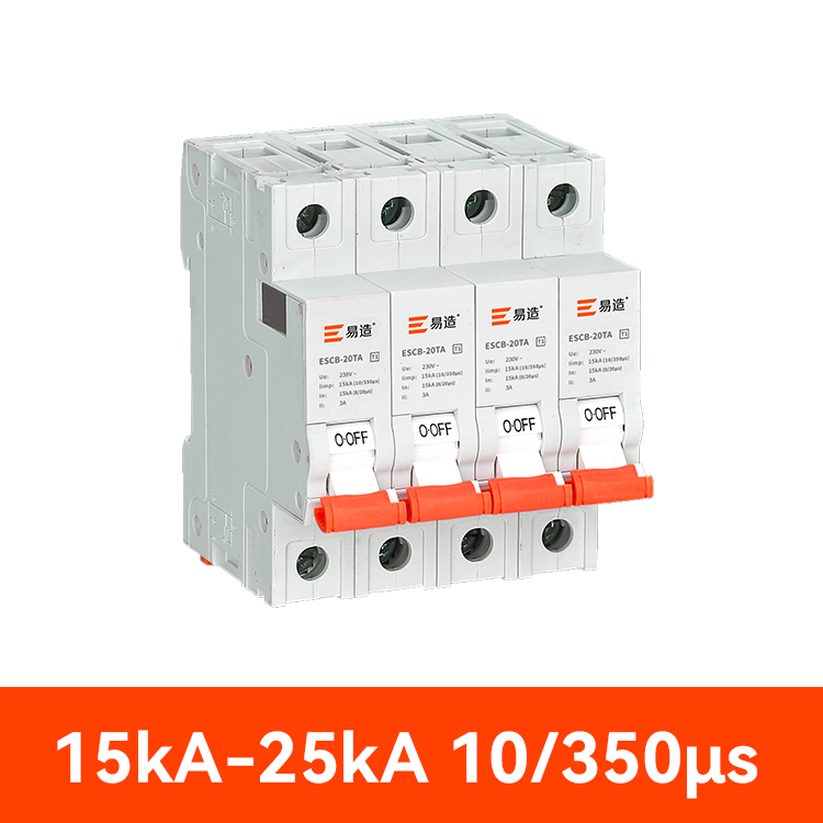 ESCB-25TA防雷后備浪涌保護器依據IEC和GB標準設計,采用主回路脫扣技術,通常用于保護Iimp為25KA的SPD,可切斷幅值高達100KA的高短路電流,并且可在極短時間內切斷3A以上的低短路電流,具有高短路分斷,低短路瞬動,電涌耐受能力高,殘壓低,尺寸小,可監控等優點,廣泛運用于配電柜,配電箱,低壓柜SPD后備防護上。