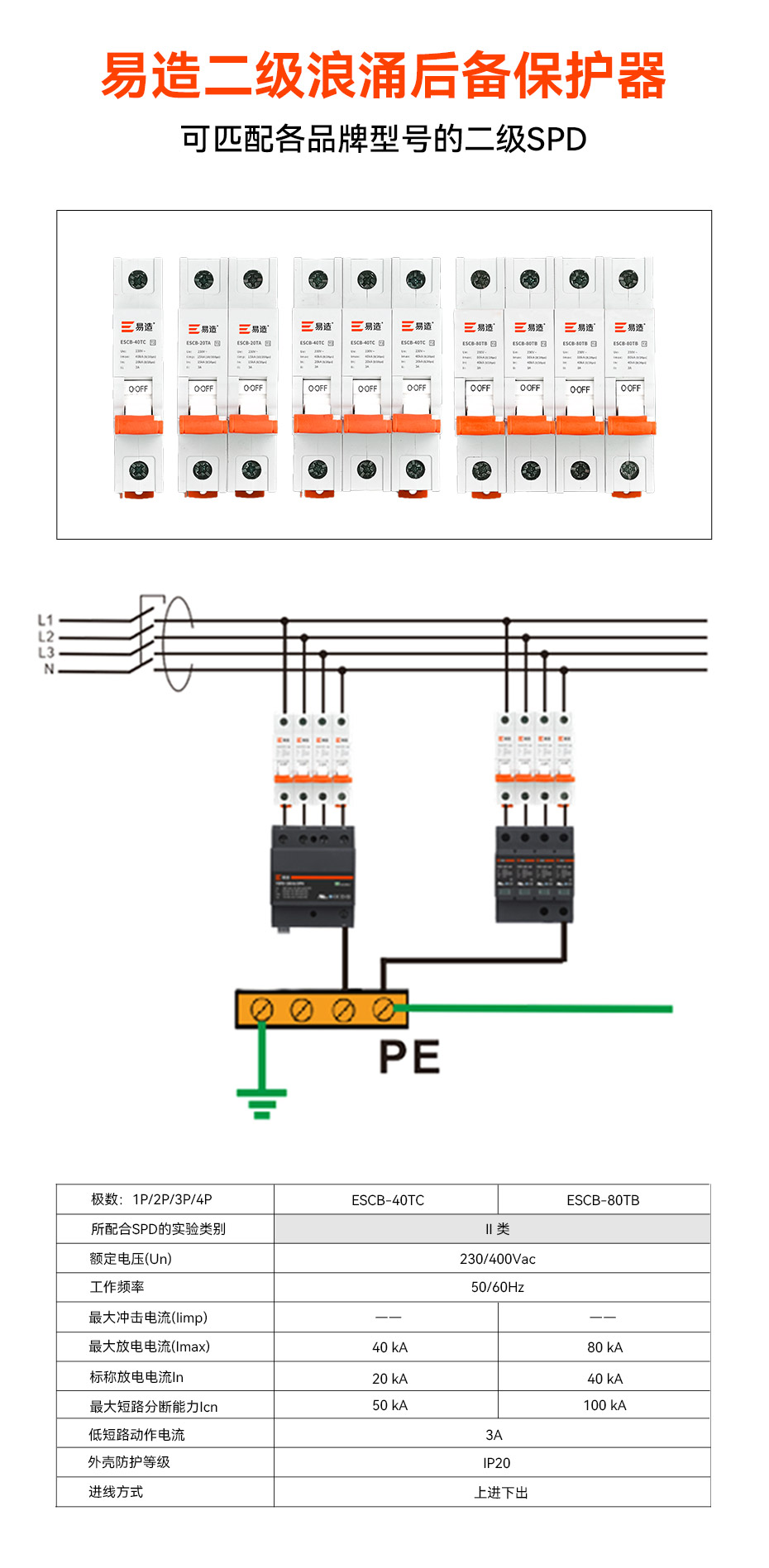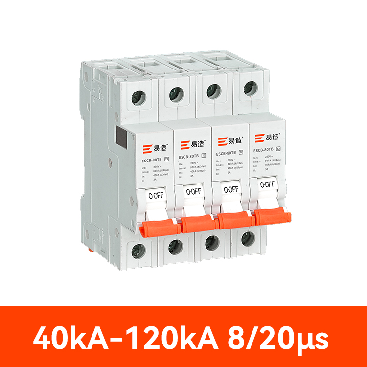 ESCB-80TB/40TC防雷后備浪涌保護器依據IECGB標準設計,采用主回路脫扣技術,通常用于保護Imax80KA的浪涌保護器,可切斷100KA的短路電流,并且可在極短時間內切斷3A以上的低短路電流,具有高短路分斷,低短路瞬動,電涌耐受能力高,殘壓低,尺寸小,可監控等優點,廣泛運用于配電柜,配電箱,低壓柜上.
