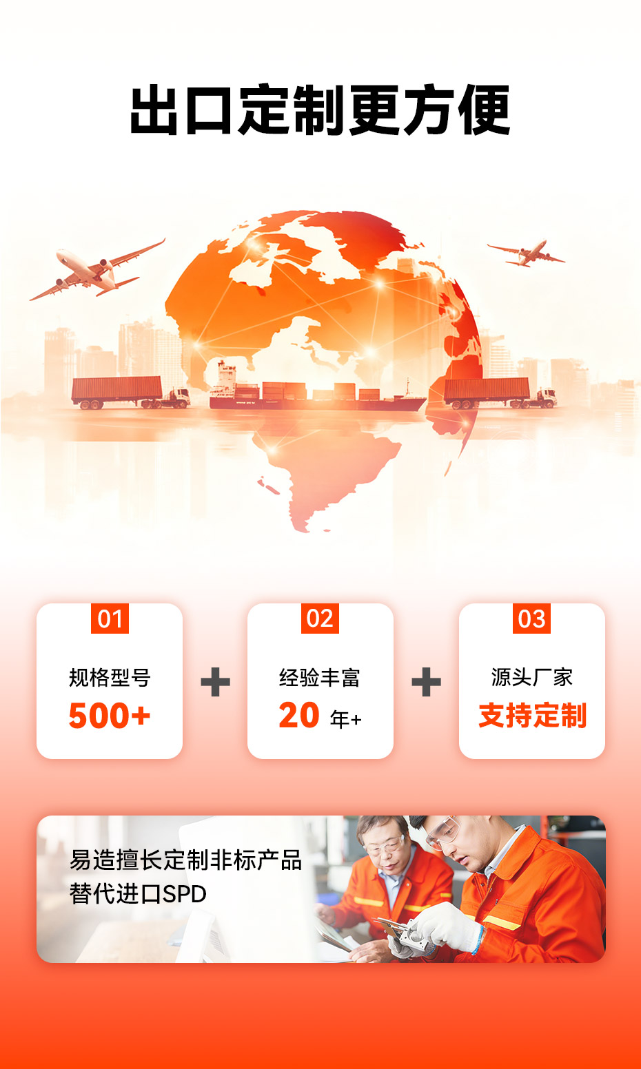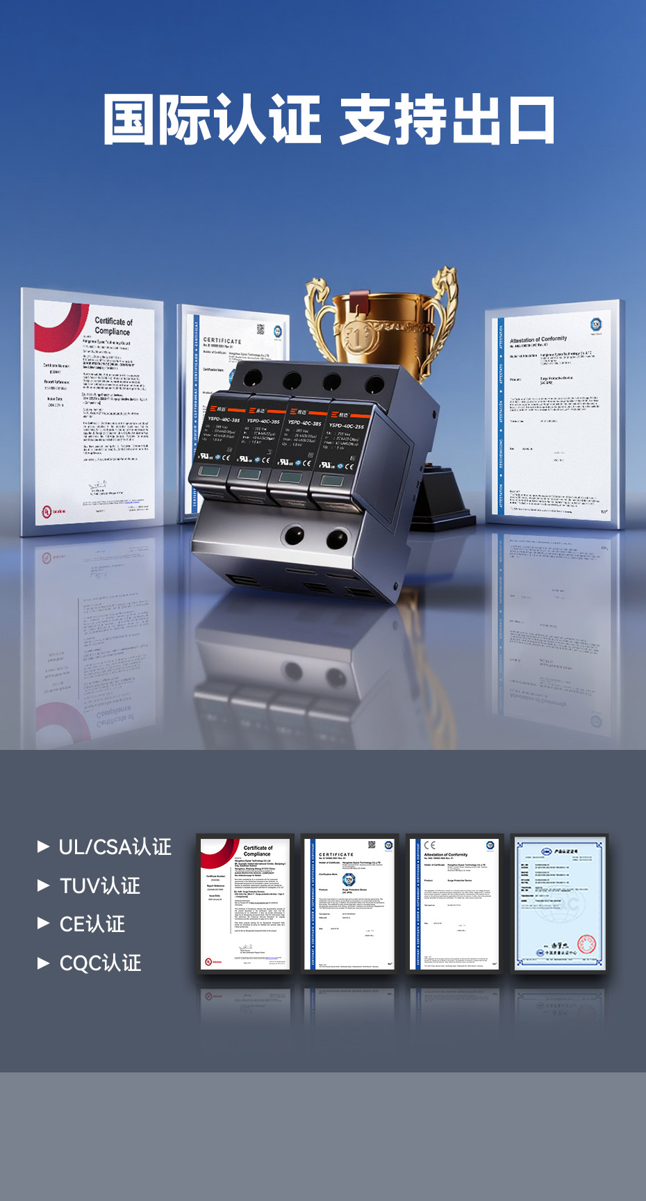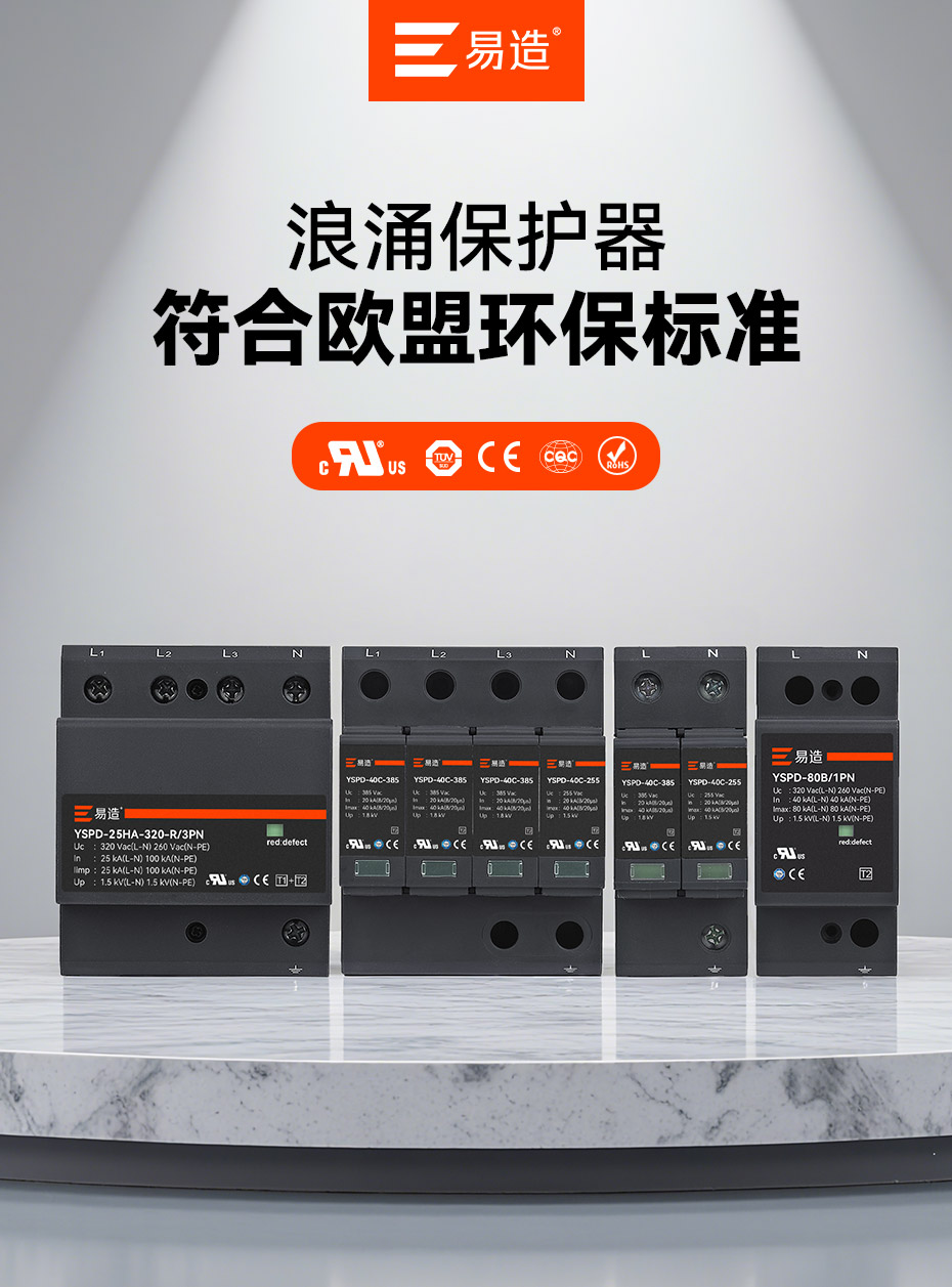 易造認(rèn)證浪涌保護(hù)器規(guī)格型號(hào)齊全,滿足全球各個(gè)國(guó)電力系統(tǒng)單相和三相的防雷保護(hù),符合全球市場(chǎng)的最高質(zhì)量和歐盟環(huán)保標(biāo)準(zhǔn),可替代進(jìn)口品牌SPD,支持外貿(mào)出口定制。